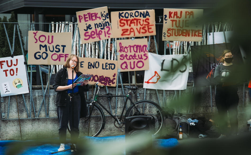 Med aprilom in junijem 2021 so posameznice in posamezniki, ki so se zbirali v samonikli iniciativi Študentska fronta, dobivali na dom pisma s policije. Zaradi govorov. Zaradi obiska kampusa – našega Študentskega kampusa, ki je bil v času uradnih ur zaprt. Zaradi kritik nekaterih vladnih odlokov. Zato, ker smo se izpostavljale v javnem prostoru in izražale svoje nestrinjanje z aktualnim stanjem. Ki je nevzdržno.