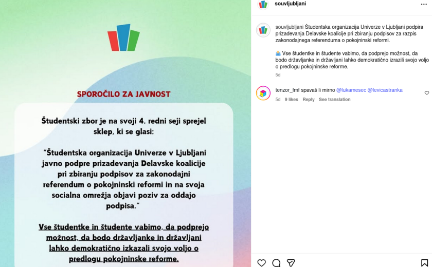 Govorile bomo še o glasovanju glede seznanitve s predlaganimi dopolnitvami Statuta ŠOU, ki je v neskladju s študentsko ustavo, in o tem, kako se je ŠOU opredelil glede referenduma proti pokojninski reformi.