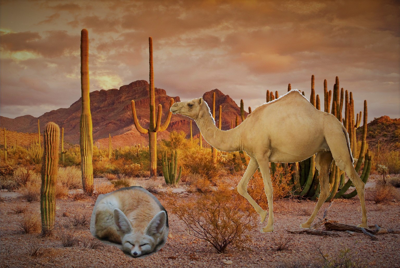 Med favno, prilagojeno na sušna puščavska okolja, najdemo predstavnike skoraj vseh taksonov oziroma skupin. Od velikih sesalcev, kot so kamele, antilope, puščavske lisice oziroma feneki, malih sesalcev, katerih najznačilnejši predstavniki so glodalci – puščavski skakači, pa do plazilcev, ptic, žuželk, kot so saharske mravlje, in celo do rib. K slednjim se bomo vrnili v nadaljevanju.