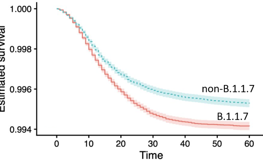 V novi raziskavi, objavljeni v reviji Nature, raziskovalci in raziskovalke poročajo o novih epidemioloških rezultatih, vezanih na različek B.1.1.7 virusa SARS-CoV-2, ki je širše poznan kot britanska različica. Izsledki raziskave, ki je zaobjela velik vzorec okuženih in umrlih z omenjenim različkom v Veliki Britaniji v zadnjih treh mesecih, kažejo, da je za to različico značilna izrazito višja umrljivost. Nepristranska statistična analiza je pokazala, da so okuženi z različkom B.1.1.7 umirali pogosteje, umrljivost je višja za 55 odstotkov. Britanski raziskovalci in raziskovalke so sicer že pred tem poročali, da se omenjena različica virusa lahko širi od 40 do 90 odstotkov hitreje kot preostale. Podatka o hitrem in bolj smrtnosnem širjenju različka B.1.1.7 sta precej zaskrbljujoča in opozarjata na nujnost okrepitve prizadevanj k zmanjšanju števila okužb v prihodnjih tednih in mesecih.