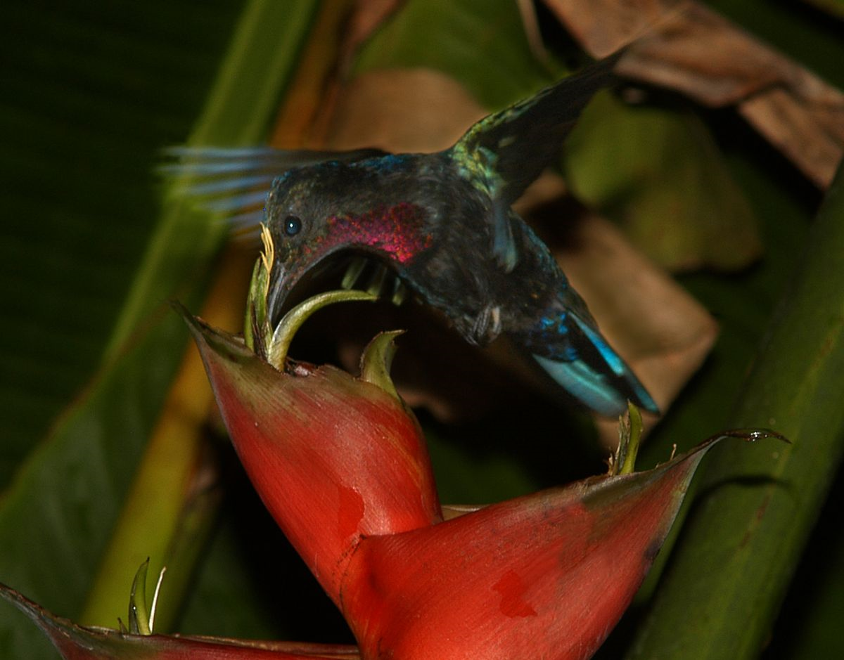 Modeli opraševanja za raznolikost cvetov predvidevajo, da tekmovanje med dvema različnima opraševalcema vodi v različne oblike cvetov, višji odstotek selektivnega parjenja med rastlinami in razvoj dveh cvetnih fenotipov. Skupina raziskovalk in raziskovalcev je napovedi tega modela testirala na vrsti karibskih kolibrijev Anthracothorax jugularis kot opraševalcih in karibski helikoniji kot opraševani rastlini. Kot analog pelodnih zrn so uporabili fluorescenten prah, ki so mu lahko sledili ob prehodu z enega na drug cvet.