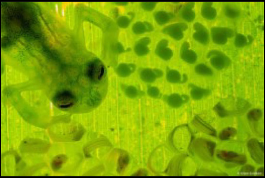 Tokrat se v znanstvenih novicah selimo v deževne gozdove Srednje in Južne Amerike, kjer biva 160 vrst tako imenovanih steklenih žab. Kot za večino drugih žab je tudi za to družino značilna zunanja oploditev. Žabec med parjenjem s samico v okolico odloži spermo, samica pa odloži jajčeca. Ker gre za način zunanje oploditve, se del sperme izgubi še pred oploditvijo, prav tako pa lahko v bližino jajčec svoje spermije izloči drug samec. Kako torej samci različnih vrst steklenih žab povečajo možnost uspešne oploditve?