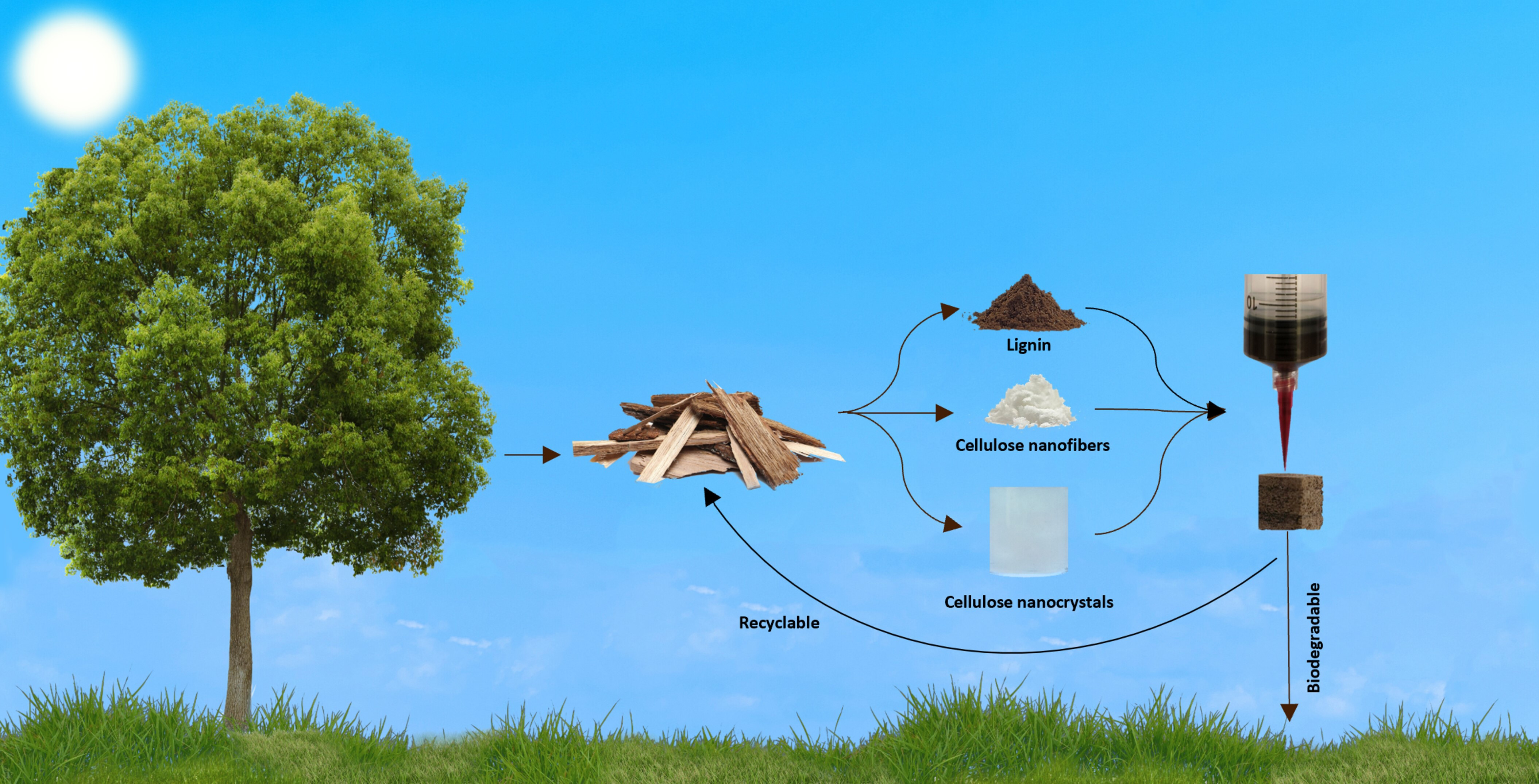 Raziskovalke in raziskovalci so razvili visokoelastično črnilo na vodni osnovi, ki temelji na osnovnih gradnikih lesa – celulozi in ligninu. Za celulozni del so uporabili dva tipa celuloznih struktur - nanokristale in nanofibrile. Na ta način so posnemali tako kristaliničen kot strukturno neurejen amorfen del naravno prisotnih vlaken celuloze, ki predstavljajo najmanjši sestavni del lesa. Razmerje obeh tipov celuloznih struktur so prilagodili 3D-tiskanju pri sobni temperaturi in dosegli resolucijo do 200 mikrometrov.